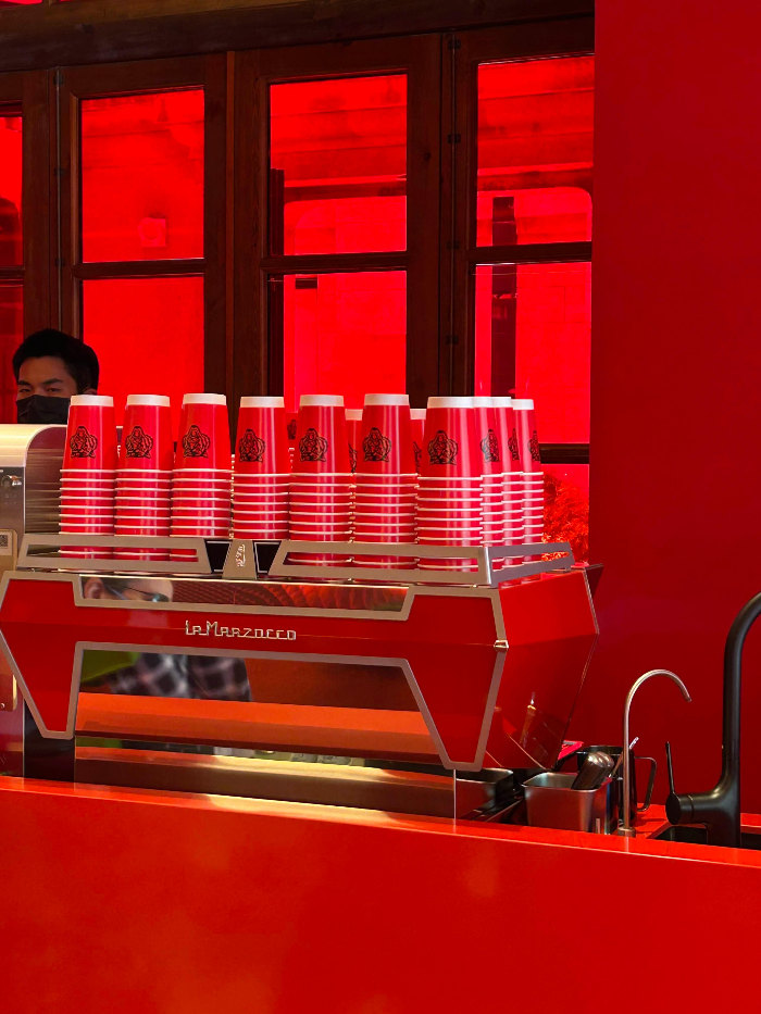 매장 내부의 붉은 색 인테리어가