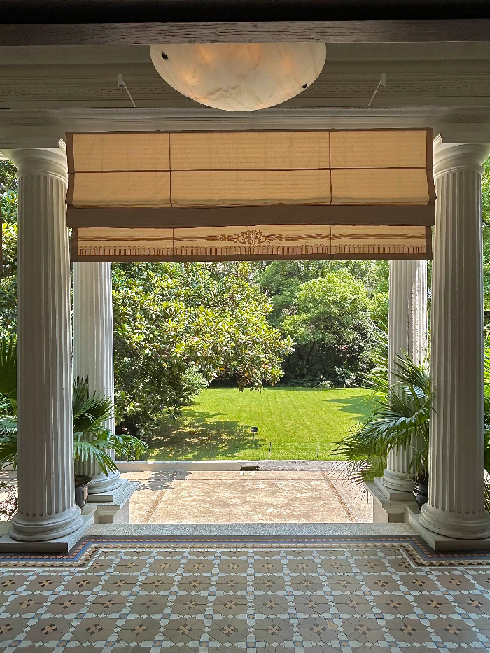 콜로니얼 스타일의 테라스 좌석입니다.